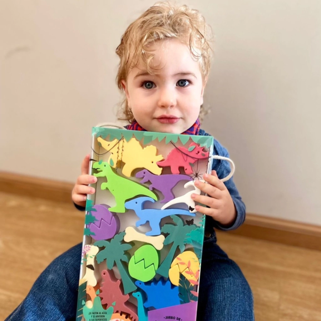 Este juego de dinosaurios de goma EVA está diseñado para fomentar la creatividad, el juego libre y el desarrollo motriz de los chicos. Es seguro, lavable, blando y lleno de color.